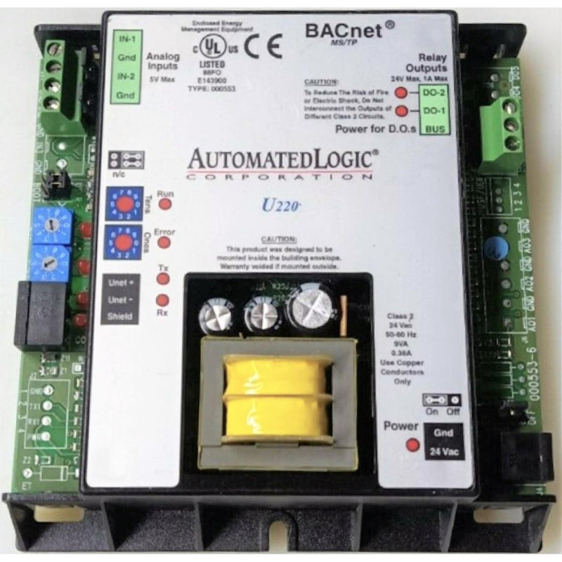 Automated Logic BacNet U220 | Refurbished Low stock! Product form $1,050.00 1 in stock Quantity Add to cart This item is a recurring or deferred purchase. By continuing, I agree to the cancellation policy and authorize you to charge my payment method at the prices, frequency and dates listed on this page until my order is fulfilled or I cancel, if permitted. Buy 5, save 5%2-Year WarrantyQuality GuaranteeFree Standard Shipping Value Controls is not an authorized distributor for the above manufacturer.
